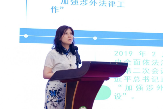 司法部法律资格局法学教育和职前培训处处长高玉艳围绕《加强交流协作,以高质量人才培养保障涉外法治建设高质量发展》展开分享。她指出,司法部高度重视涉外法治人才培养,在中央依法治国办统一领导下,聚焦人才培养、使用、储备、推送各环节,不断加大工作力度,取得积极成效。在涉外法治人才培养过程中,需持续深化对习近平法治思想,坚持以实践为导向,进一步凝聚协同推进涉外法治人才培养的工作合力,着力强化协同育人机制建设,着力拓展实战实训平台范围,牢牢把握法律专业学位研究生的培养目标,推动法律专业学位研究生教育工作高质量发展。