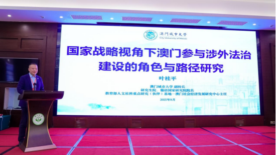 在主旨发言环节,澳门城市大学副校长、教授叶桂平围绕《国家战略视角下澳门参与涉外法治建设的角色与路径研究》展开分享。澳门在国家发展中具有重要战略地位,习近平总书记曾称赞澳门是祖国的掌上明珠,并提出其未来要成为国家对外开放的“桥头堡”。澳门区域面积较小,但凭借独特地缘优势,在国家五年规划中被赋予建设世界旅游休闲中心、中国与葡语国家商贸合作服务平台等重要定位。当前,澳门法治建设面临修法、立法压力,经济发展离不开法治保障。澳门高校正积极行动,扩大招收内地学生,加强涉外法治课程体系建设,推动法学与区域国别学交叉融合,培养涉外法治人才。未来要进一步发挥横琴粤澳深度合作区作用,建设国际法务集聚区,培养高端实务人才,服务国家高水平对外开放。