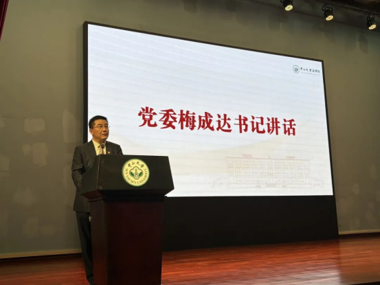 梅成达书记代表学院党委向来自五湖四海的2025级本科新生表示热烈的欢迎和诚挚的祝贺。他号召同学们将个人的发展和国家的繁荣紧密相连,坚守法治信仰,敢想敢为又善作善成,立志做有理想、敢担当、能吃苦、肯奋斗的新时代好青年,努力成为适应时代发展、服务社会需要的优秀人才。