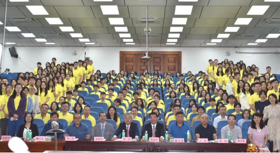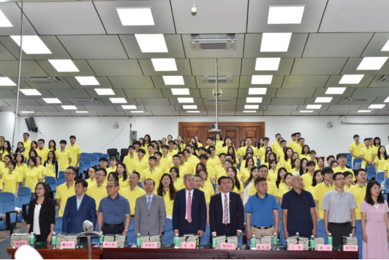 新生见面会伊始,全体师生肃立齐唱国歌,激昂的旋律传递着爱国情怀,为新生营造了庄重而热烈的入学氛围。