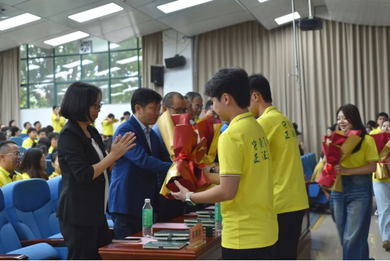 在全国第41个教师节来临之际,新生代表向在场每一位教师敬献鲜花,以此表达对老师们深深的敬意与感激之情,感恩他们以专业与热忱点亮学子的求学之路。