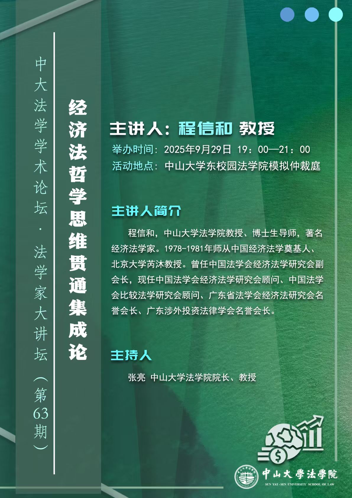 中大法学学术论坛 · 法学家大讲坛(第63期) :经济法哲学思维贯通集成论