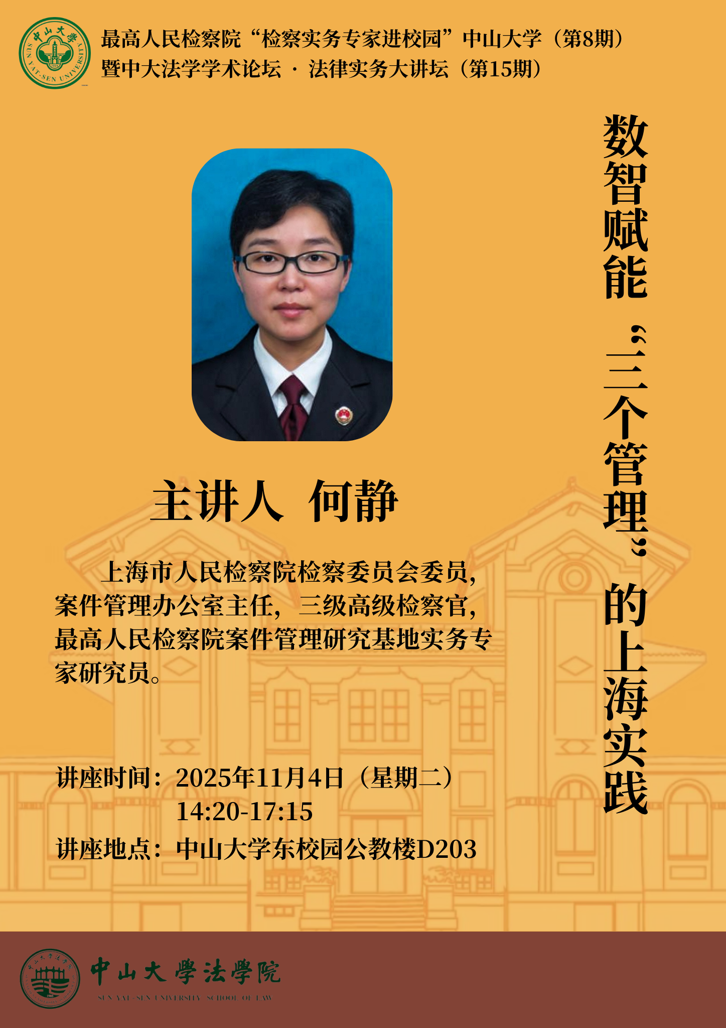 最高人民检察院“检察实务专家进校园”木瓜视频 (第8期)、中大法学学术论坛·法律实务大讲坛(第15期):数智赋能“三个管理”的上海实践